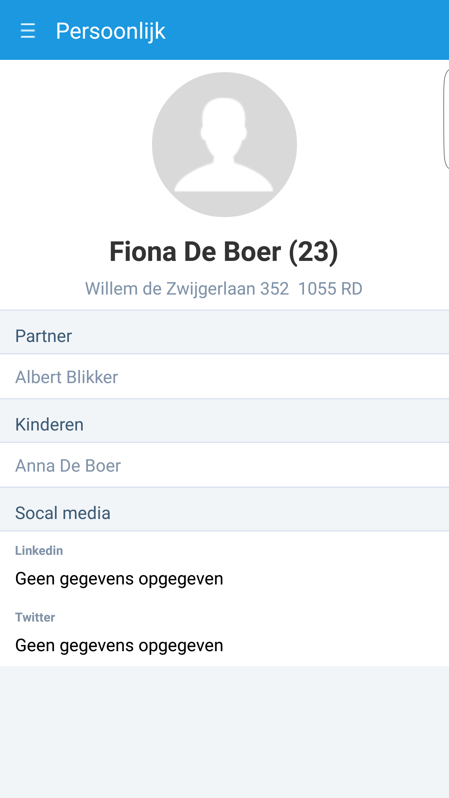 De persoonlijke gegevens kunnen via de mobiele app voor personeel en salaris eenvoudig worden geraadpleegd. Uw werkgever is verantwoordelijk voor de juistheid van deze gegevens. Afhankelijk van de afspraken met uw werkgever kunt u deze gegevens zelf wijzigen of zult u aan uw werkgever moeten vragen om te wijzigen.